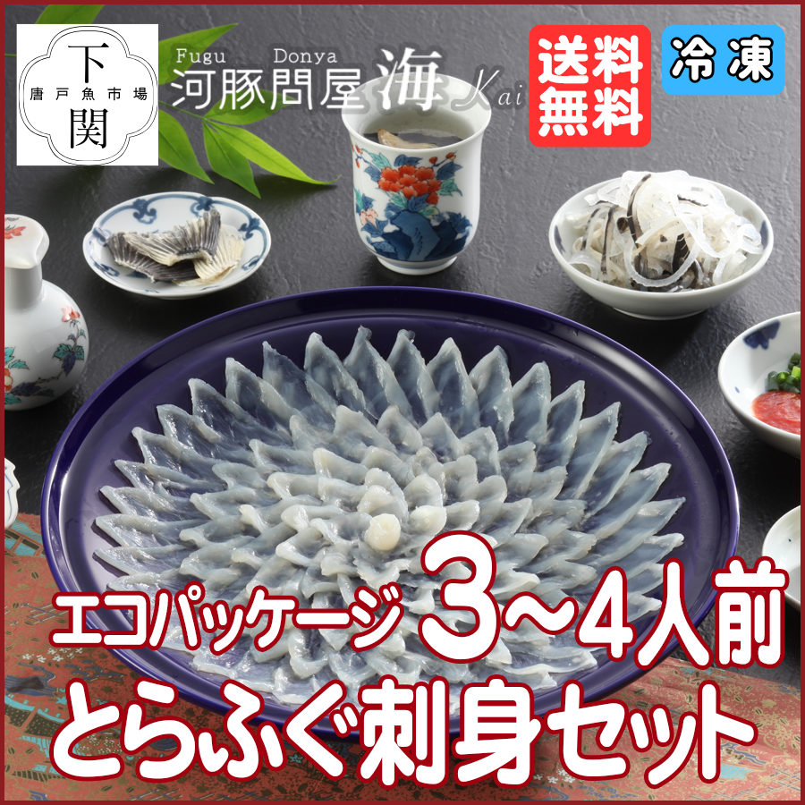 国産とらふぐ刺身セット 3〜4人前/ECO【冷凍】【送料無料】※北海道・沖縄を除く